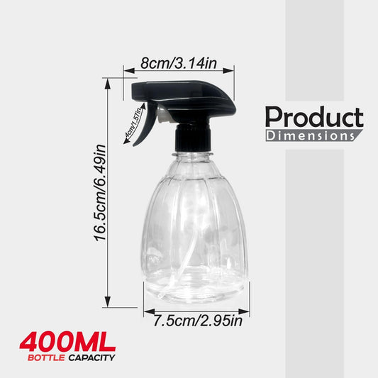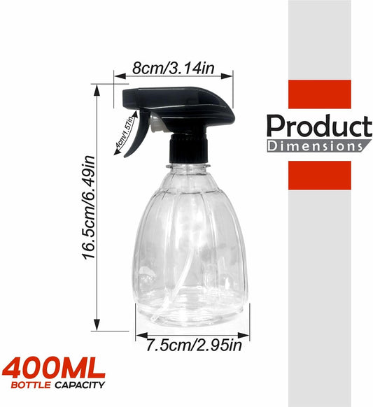 Empty Spray Bottle Plastic Bottles Essential Oil Gardening Trigger Sprayer Reusable Fine Mist Travel Party Barbershop Plant Mist Kitchen Bathroom Organic Cleaning Hair Salon 400ml (Clear) (Pack of 2)